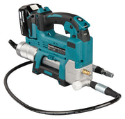 Kompakte Akku-Fettpresse. Der maximale Auspressdruck beträgt 690 bar. Mit dem 1,2 m langen Schlauch lassen sich auch schwer zugängliche Schmiernippel gut erreichen. Die Auspressgeschwindigkeit lässt sich in zwei Stufen bis 290 ml pro Minute regeln. In Stufe 2 wird die Auspressgeschwindigkeit automatisch reguliert. Mi 1x 5.0 Ah Akku, Schnellladegerät und Transportkoffer.