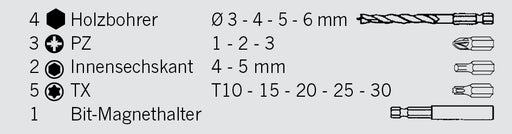 PROJAHNBohrer-Bit-Box 15-tlg. Holzbohrer mit E 6.3 Schaft Ø 3, 4, 5, 6 mm Bits: PZ, TX, Hex Hochwertiger Holzbohrer, Schaft und Bohrspirale sind aus dem v...