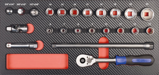 Vollständige Details anzeigen3/8" Werkzeug-Satz Einlage 23tlg 23-tlg. Werkstattwagen-Einlage mit metrischen Steckschlüsselwerkzeugen 10 [3/8"] nach DIN 3120 / ISO 1174 Aus wide...