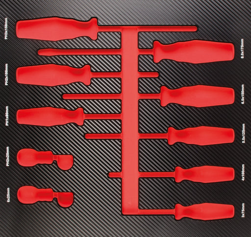 Vollständige Details anzeigenProForm Einlage leer für 10 Schraubendreher 10-tlg. Werkstattwagen-Einlage mit PH-, PZ- und Schlitz-Schraubendrehern sowie Vergaser-Schraubedrehern...
