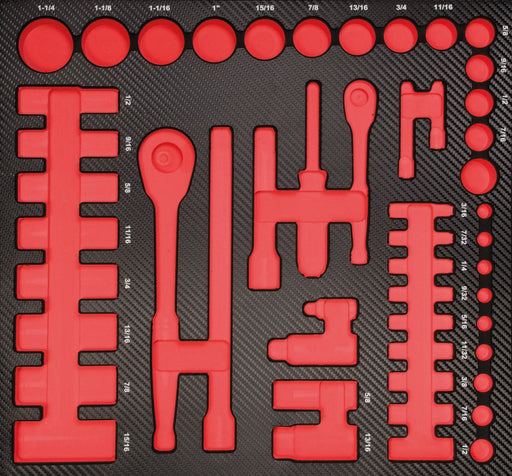 ProForm Einlage leer f. Zoll Werkzeuge 51-tlg. Werkstattwagen-Einlage mit zölligen Steckschlüsselwerkzeugen 6,3 [1/4"] und 12,5 [1/2"] nach DIN 312...