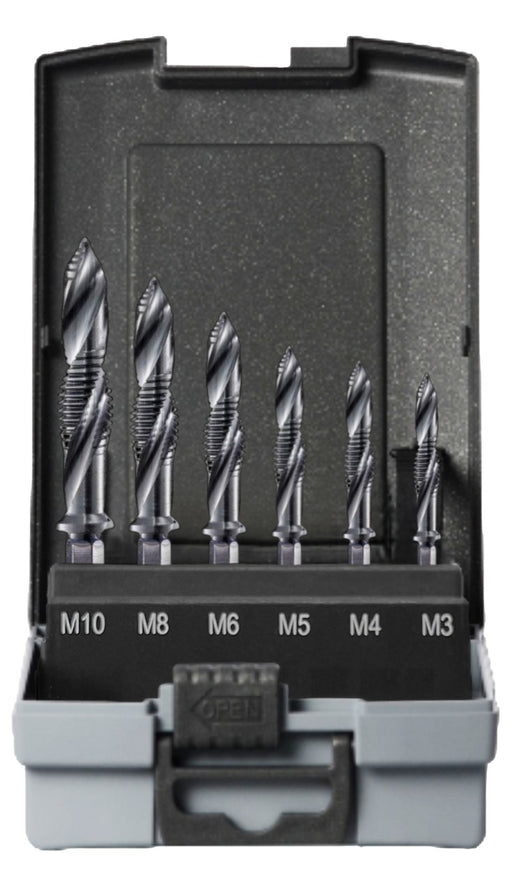 Vollständige Details anzeigenPROSTEP Kombigewindebohrer HSS-G TiAlN Set 7-tlg. Hochpräzise Kernlochbohrungen durch PROSTEP-Stufenspitze Kernloch bohren, Gewinde schneiden und E...