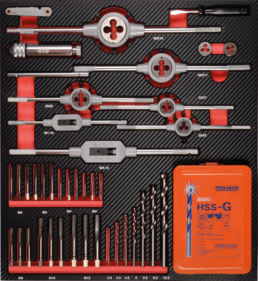 Vollständige Details anzeigenGewindeschneidwerkzeug Einlage 64tlg 64-tlg. Werkstattwagen-Einlage mit Handgewindebohrern, Schneideisen und entsprechenden Verarbeitungswerkzeugen...
