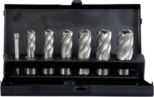Vollständige Details anzeigenKernbohrer in Stahlblechkassette 7tlg. Ø 12/14/16/18/20/22 mm, 1 Führungsstift