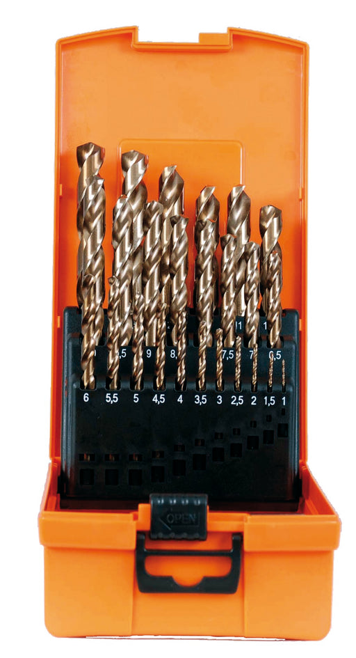 Vollständige Details anzeigenKunststoffkassette HSS-Co 1-13 mm 25tlg ECO Kobaltlegierter Spiralbohrer nach DIN 338 mit Zylinderschaft Kurze Ausführung in geschliffener Qualität...