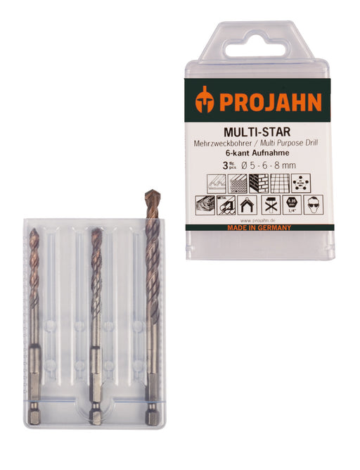 PROJAHNMulti-Star Satz 3-tlg. 6-kant 5, 6, 8 mm Einsatz in vielfältigen Werkstoffen Extra scharfe Hartmetallschneiden Innovative Spiralgeometrie Optimale ...