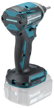 18V brushless Akku-Schlagschrauber mit harten Anziehdrehmoment von 175 Nm. 3 Stufen + T-Modus zum optimalen Verarbeiten von Teks-Selbstbohrschrauben. Stufenlose Geschwindigkeit und Motorbremse. Links- /Rechtslauf mit integriertem Schiebeschalter im Handgriff. Geliefert ohne Akkus, ohne Ladegerät und mit Gürtelclip und Makpac-B Transportkoffer.