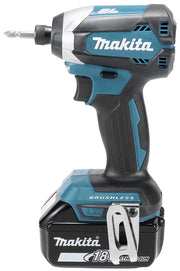 Ein kompakter und leichter brushless Akku-Schlagschrauber mit 18V Antrieb und eine Werkzeugaufnahme (Innenschskant) von 1/4". Max. Drehmoment von 170 Nm, geeignet für schnelles Schrauben. Ein handliches LED-Arbeitslicht für zusätzliche Beleuchtung. Geliefert mit 2 x 5.0 Ah Akkus, Schnelladegerät, Gürtelclip und ein Makpac-B Transportkoffer.
