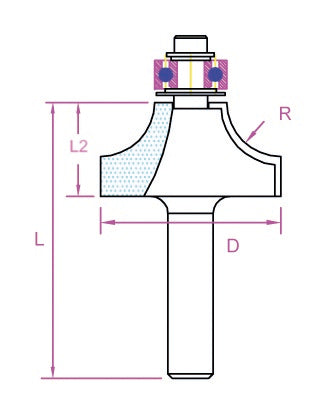 Abrundfräser mit Kugellager D 25,4 mm, L 45,4 mm, L2 13,5 mm Lange Lebensdauer durch hochwertige Hartmetall-Schneiden Lange Lebensdauer Für ein pr...