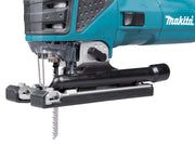 720W-Stichsäge mit dreistufigem Pendelhub und werkzeuglosem Blattwechsel für den professionellen Einsatz. Mit effektivem Antivibrationssystem, niedrigem Geräuschpegel, Hublänge von 26 mm und eine Schnittleistung von 135 mm in Holz und 10 mm in Weichstahl. Geliefert mit Makpac-A Transportkoffer.