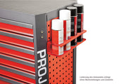 - Dosenhalter für 4 handelsübliche Spraydosen, wie Bremsenreiniger, Multifunktions- oder Druckluftsprays