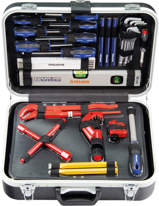 Vollständige Details anzeigenSanitär Werkzeugkoffer 98tlg Auf das Sanitärhandwerk abgestimmter Inhalt Ideal für Handwerker, Monteure oder Lehrlinge Stabiler, bruchfester und ab...