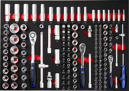Vollständige Details anzeigenProForm Einlage leer f. 1/2" lange Nüsse 12-tlg. Werkstattwagen-Einlage mit metrischen Steckschlüsselwerkzeugen 12,5 [1/2"] nach DIN 3120 / ISO 117...