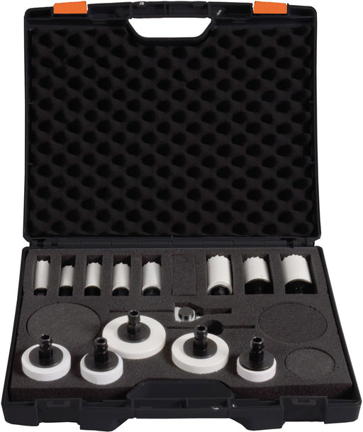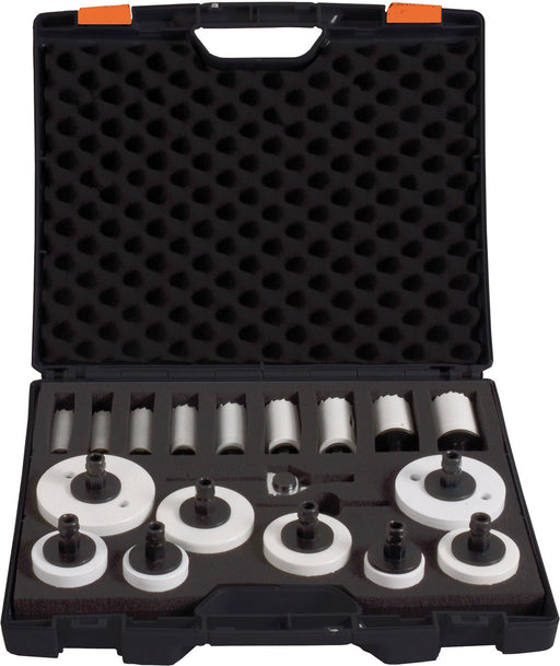 Vollständige Details anzeigenBiMetall Lochsägen-Koffer "Universal" 18 tlg. 17 an der Lochsäge vormontierte Verbindungsstücke, inkl. 1 x Schnellwechsel-Adapter