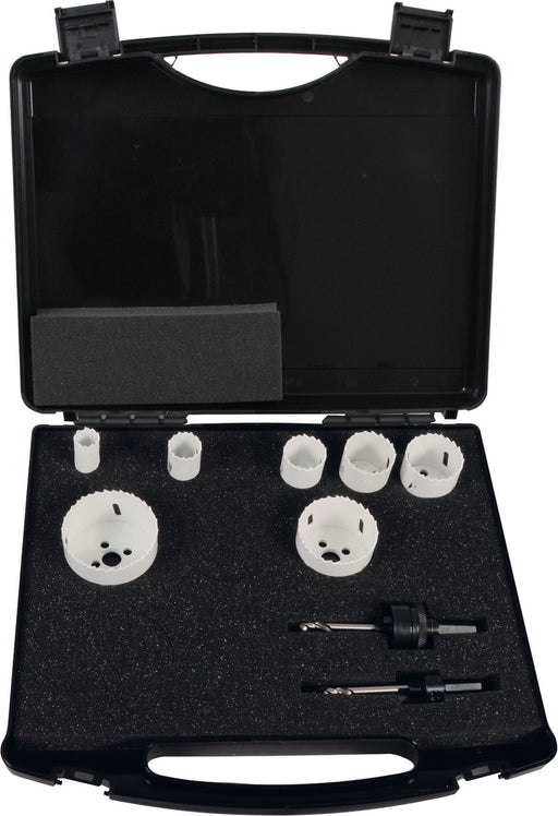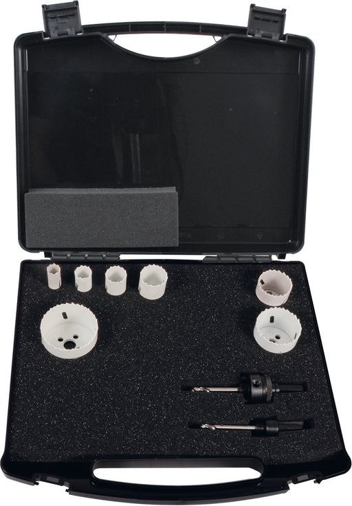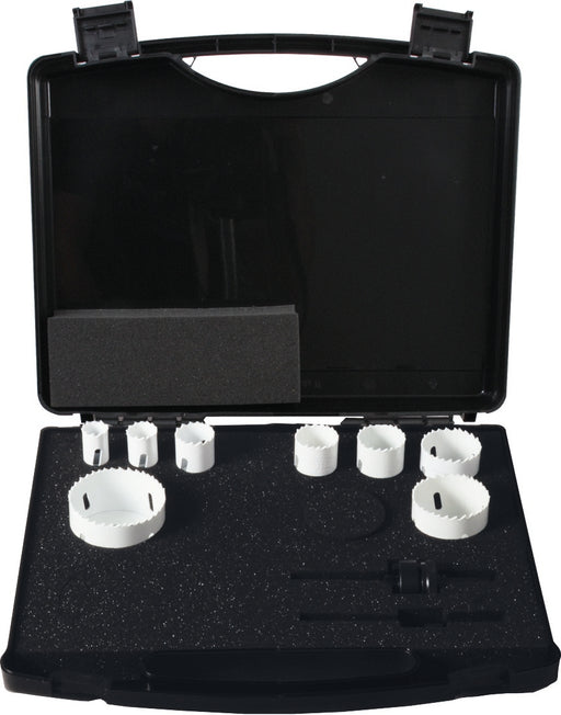 Vollständige Details anzeigenBiMetall Lochsägen-Koffer "Elektro II" 9tlgLochsägenkoffer „Elektro II“-Satz Bi-Metall Lochsägen mit 8% kobaltlegierter Vario Verzahnung Vario-Verz...
