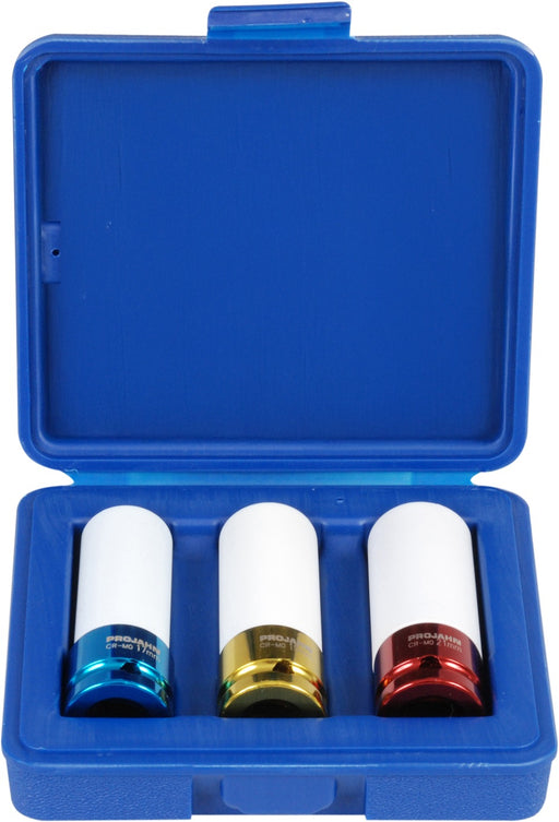 Vollständige Details anzeigen1/2" Tiefe Schlag Stecknuss Satz f. Alufelgen 3tlg Kunststoff ummantelt zum beschädigungsfreien Arbeiten an Leichtmetallfelgen Aus speziellem Chrom...