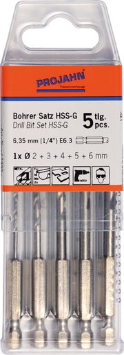 HSS-G Bohrer Satz 6-kant Schaft E6.3 5-tlg. (2, 3, 4, 5, 6 mm)