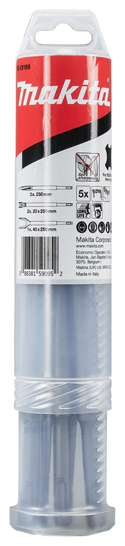 2x selbstschärfende Spitzmeissel + 2x selbstschärfende Flachmeissel mit einer Breite von 25 mm + selbstschärfender Breitmeissel mit einer Breite von 50 mm